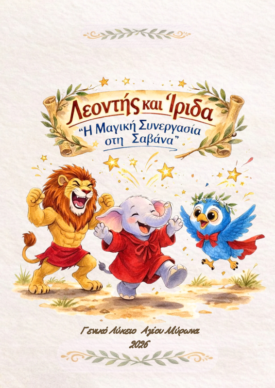Το έργο «Λεοντής και Ίριδα - Μαγική Συνεργασία στη Σαβάνα» δημιουργήθηκε στο πλαίσιο προγράμματος φιλαναγνωσίας και δημιουργικής γραφής με στόχο την προώθηση της παγκόσμιας συναδέλφωσης και της συνεργασίας. Οι μαθητές συμμετείχαν ενεργά σε όλα τα στάδια δημιουργίας, γράφοντας την ιστορία, αφηγούμενοι με τις δικές τους φωνές το ψηφιακό παραμύθι και εικονογραφώντας το με προσωπικές ζωγραφιές, οι οποίες ζωντανεύουν μέσα από κινούμενη εικόνα. Το παραμύθι εμπλουτίζεται με δημιουργικές δραστηριότητες, όπως χρωμοσελίδες, παιχνίδια, ποίημα και τραγούδι, καθώς και προτάσεις αξιοποίησης για γονείς και εκπαιδευτικούς, ενισχύοντας τον παιδαγωγικό και διαδραστικό του χαρακτήρα. Το έργο εκδόθηκε και παρουσιάστηκε σε σχολική εκδήλωση, ενώ τα έσοδα από τις δωρεές για την απόκτησή του διατίθενται για την ενίσχυση της Ογκολογικής Κλινικής Παίδων ΠΑΓΝΗ, αναδεικνύοντας τη δύναμη της δημιουργίας ως πράξη προσφοράς και αλληλεγγύης.